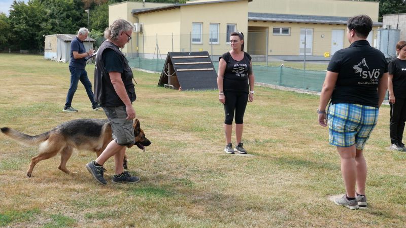 Besonders hervorzuheben ist hierbei die Leistung von unserem Xandl Nagornik, der in der IBGH 3/Spezial, die über 2 Tage anberaumt war (Punkte der beiden Tage werden zusammen-gezählt), mit 2 Hunden an den Start ging und Dank seiner konstanten Leistung mit Gino Black Highspeed Devil den 1.Platz mit 189 Pkt. (Sehr Gut) und mit Conan Black Highspeed Devil den 2. Platz mit 188 Pkt. (Sehr Gut) erreichte. Stefan Schön erreichte mit seiner Dori vom Stieglerhof den 4. Platz in der IBGH3/Spezial mit 168 Pkt. (Gut). Siegfried Saufüßl mit seiner Finja vom Team Falkenberg sicherte sich in der IBGH3 den 2. Platz mit 80 Pkt. (Gut). Unsere Erna Sterbik landete mit ihrer Libby in der IBGH2 auf dem 3. Platz mit 88 Pkt. (Gut). Und unsere Friederike Schweighofer bewältigte mit ihrer Mia aus der Königshöhle noch schnell die IFH 3 bevor es in den wohlverdienten Urlaub ging und platzierte sich mit 91 Pkt. (Sehr Gut) auf dem 2. Platz.