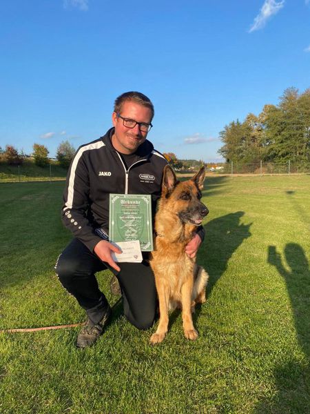 Mit Stolz können wir auf Florian Eberl blicken, der diesen Wettkampf für sich und seinen „Oetzi von der Königshöhle“ mit 292 Punkten, einem Gesamt-V, entscheiden konnte und den Sieg mit nach Kapfenberg nehmen durfte. Oetzi hatte bereits am Samstag mit 94 Punkten in der Unterordnung und 98 Punkten im Schutzdienst tolle Arbeiten gezeigt! Am Sonntag zeigte er auf der Fährte sein ganzes Können und schaffte 100 Punkte.