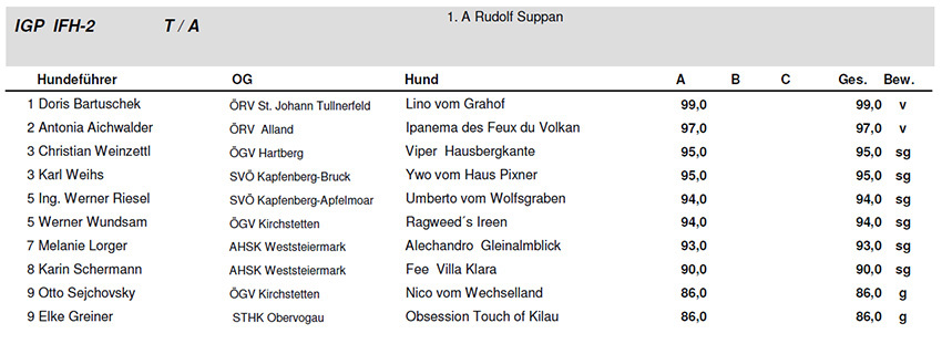 Karl Weihs hat mit Ywo vom Hause PIXNER die IFH 2 mit 93 Punkten den 2. Platz erreicht!